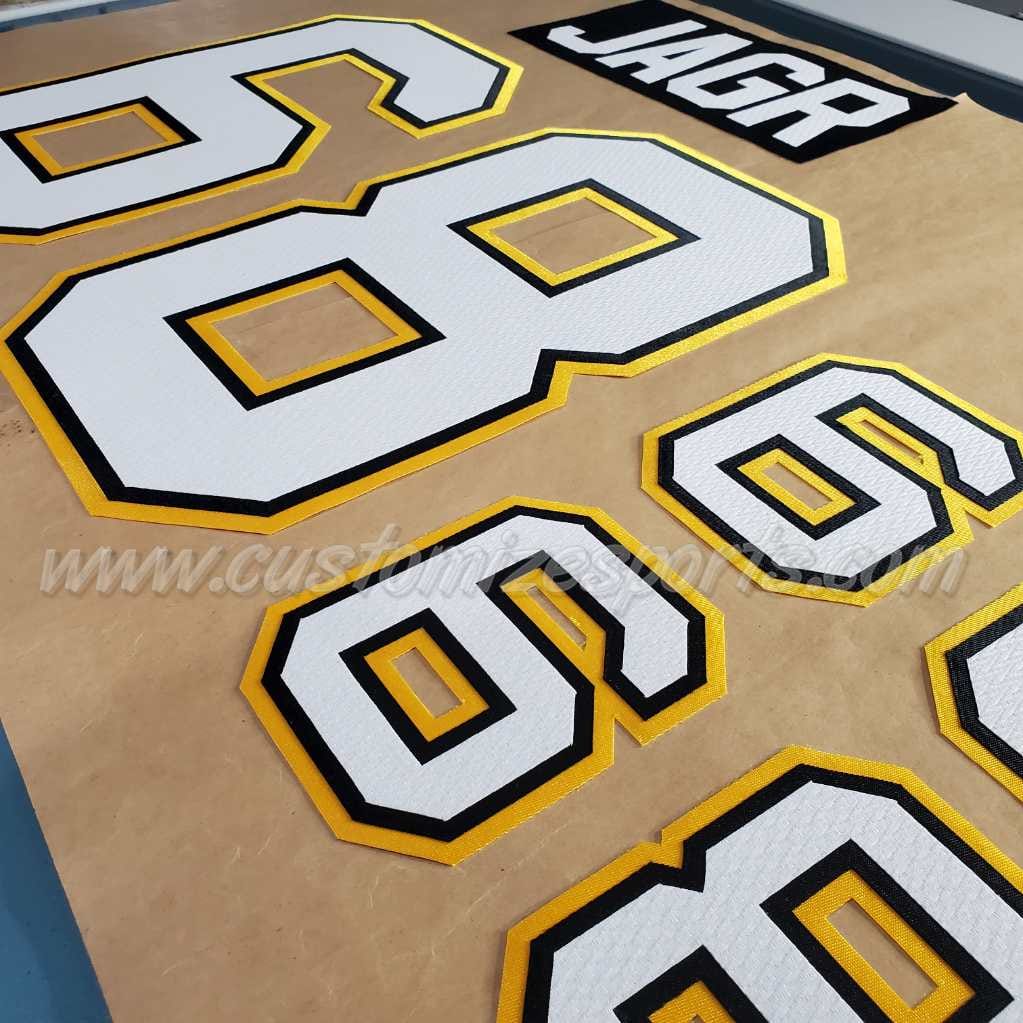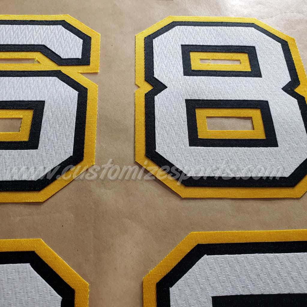 - After your name and number kit is heat-pressed or ironed on, have the kit sewn with a zig-zag pattern to ensure a permanent bond, and to prevent frayed edges of the kit.